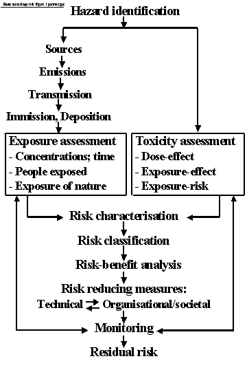 Structural model for the entire process of quantitative assessment of public health and environmental risks from toxic substances.